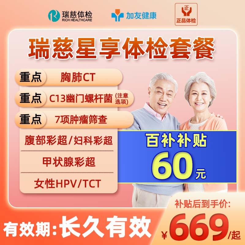 【抖音同款】瑞慈体检套餐父母星享卡中老年父母青年全身C13呼气胸肺部CTTCTHPV,TM7肿瘤筛查 瑞慈星享体检套餐