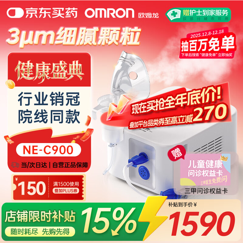 自营欧姆龙(OMRON)儿童家用老人医用雾化机婴儿压缩式雾化器NE-C900赠健康问诊卡