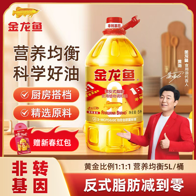 旗舰店金龙鱼1:1:1黄金比例调和油食用油5L大桶0反非转基因炒菜食用油