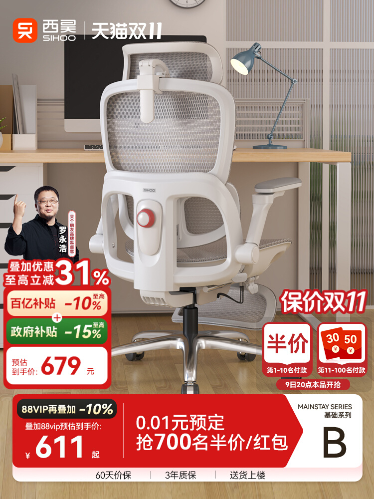 百亿补贴[罗永浩推荐]西昊B300Pro人体工学椅办公椅久坐电脑椅家用电竞椅
