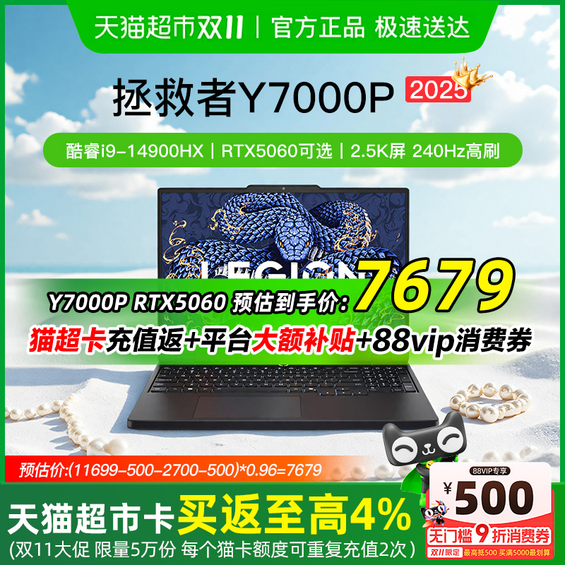 [支持88vip消费券]联想拯救者Y7000P新品2025 电竞游戏笔记本电脑