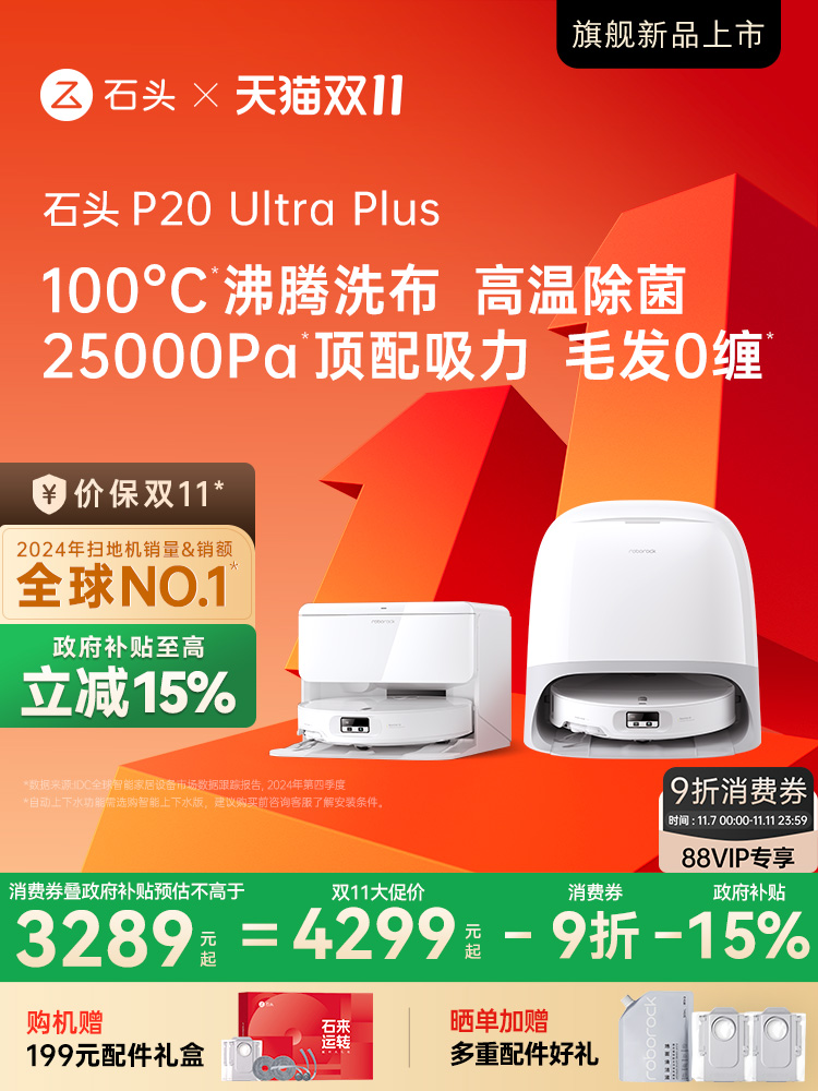 百亿补贴【政府补贴15%】石头P20 Ultra Plus扫地机器人扫地拖地一体新品