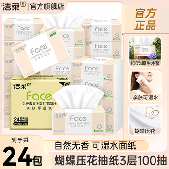旗舰店洁柔粉Face抽纸3层100抽整箱家用纸巾可湿水面巾纸家用擦手餐巾纸 3层 100抽*24包 【整箱装】