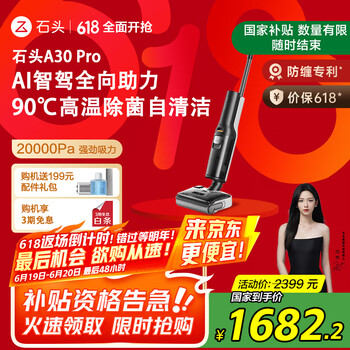 旗舰店石头(roborock)A30 Pro洗地机0缠毛超薄180°平躺推拉助力智能投放家用除菌吸拖洗一体手持吸尘器 AI智驾全向助力A30 Pro