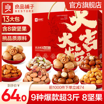 旗舰店良品铺子2024年坚果礼盒大礼包年货干果礼盒装包装盒高档送长辈送礼零食 誉福畅享礼1560g/13袋8坚果 x1箱