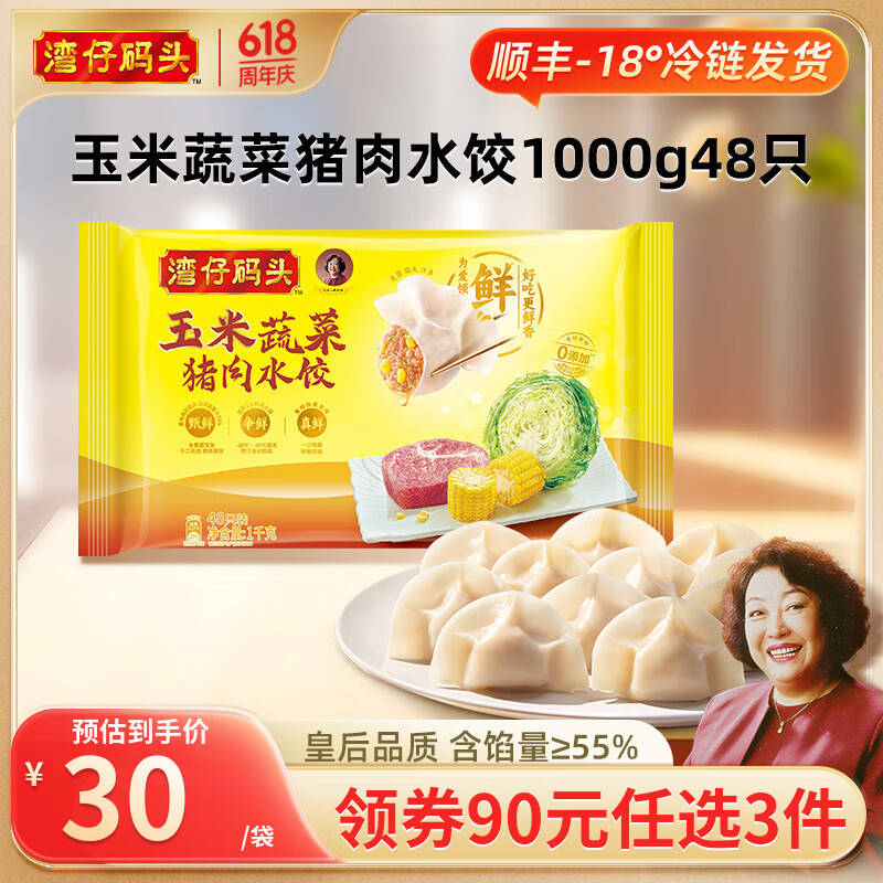 旗舰店湾仔码头 速冻饺子 早餐速食 生鲜食品 玉米蔬菜猪肉水饺1000g48只