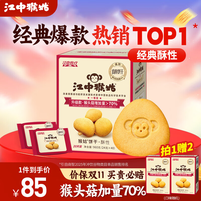 旗舰店江中猴姑饼干猴姑小饼养胃营养猴头菇零食办公室儿童【活动专用】 经典酥性饼干960g