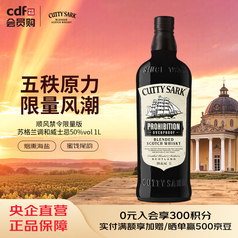 旗舰店顺风禁令限量版苏格兰调和威士忌50%vol 1L