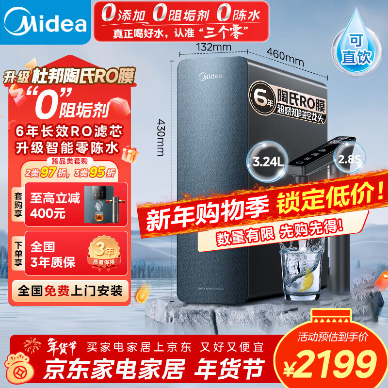 旗舰店美的星河1000G PRO净水器家用加热直饮一体机壁挂式餐边柜管线机ro反渗透直饮机厨下式净饮水机套装 【6年长效进口陶氏膜】星河1200G PRO