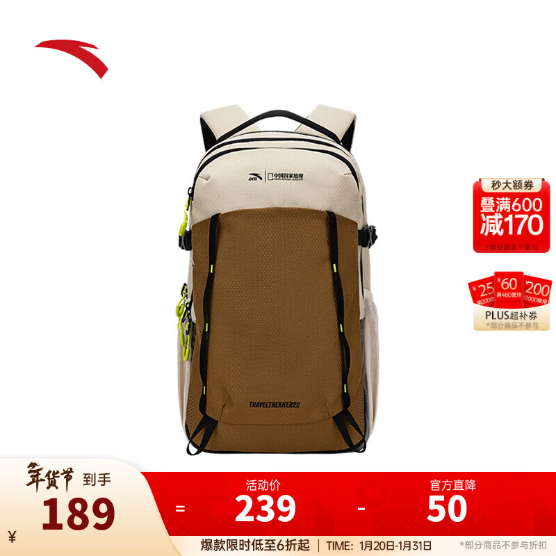 旗舰店安踏(ANTA)【TT22】中国国家地理专业户外包登山包徒步露营双肩包防泼水背包 沙褐色-3 均 码