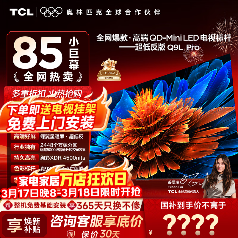 旗舰店TCL【咨询享补贴最低价】电视85Q9L Pro 85英寸电视 QD-Mini LED 蝶翼星曜屏 万象分区 绚彩XDR 85英寸 【咨询享补贴最低价】 【免费基础安装】