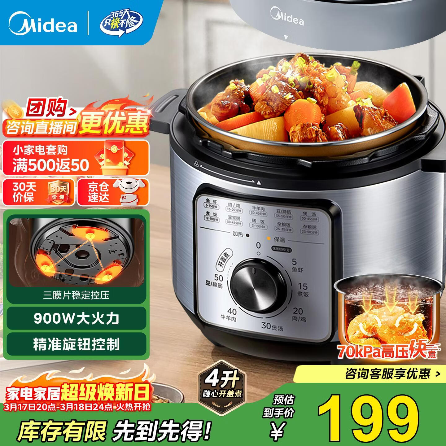 旗舰店美的(Midea)电压力锅电饭煲高压锅4升电高压锅家用多功能一体压力电饭锅电压力锅高压2-3-4-5-6人年货送好礼
