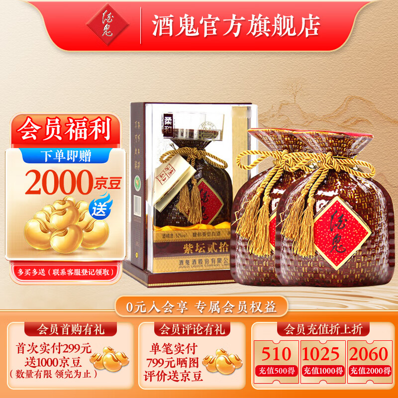 旗舰店酒鬼(JIUGUI)紫坛贰拾 馥郁香型 高度白酒 52度 500mL 2瓶 双支装(带礼袋)