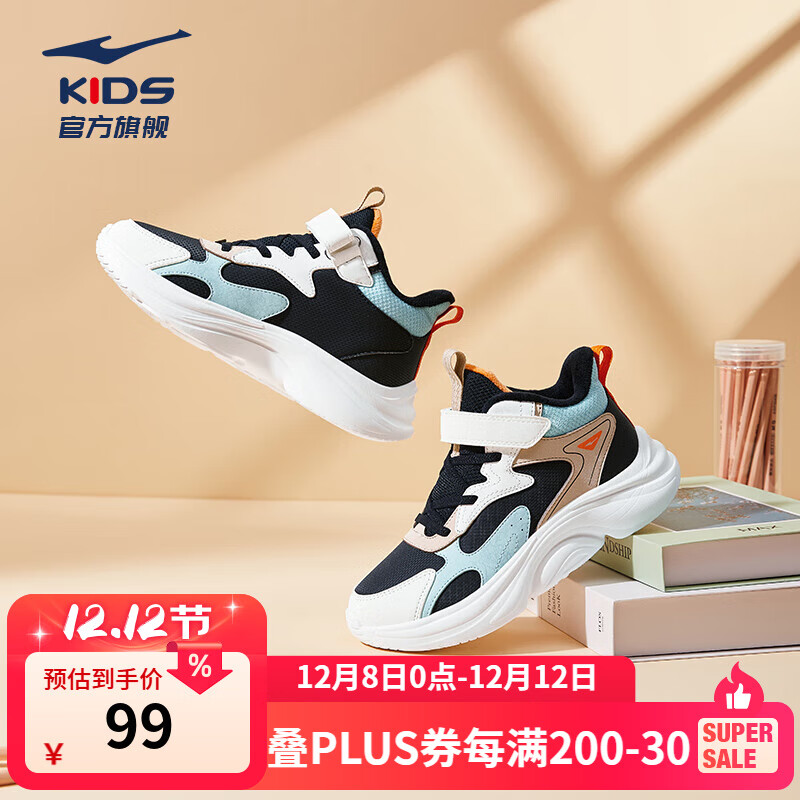 旗舰店鸿星尔克儿童运动鞋男童鞋女童棉鞋冬季小童加棉休闲鞋|川尘2 正黑/微晶白/天青色 -偏小1码 35