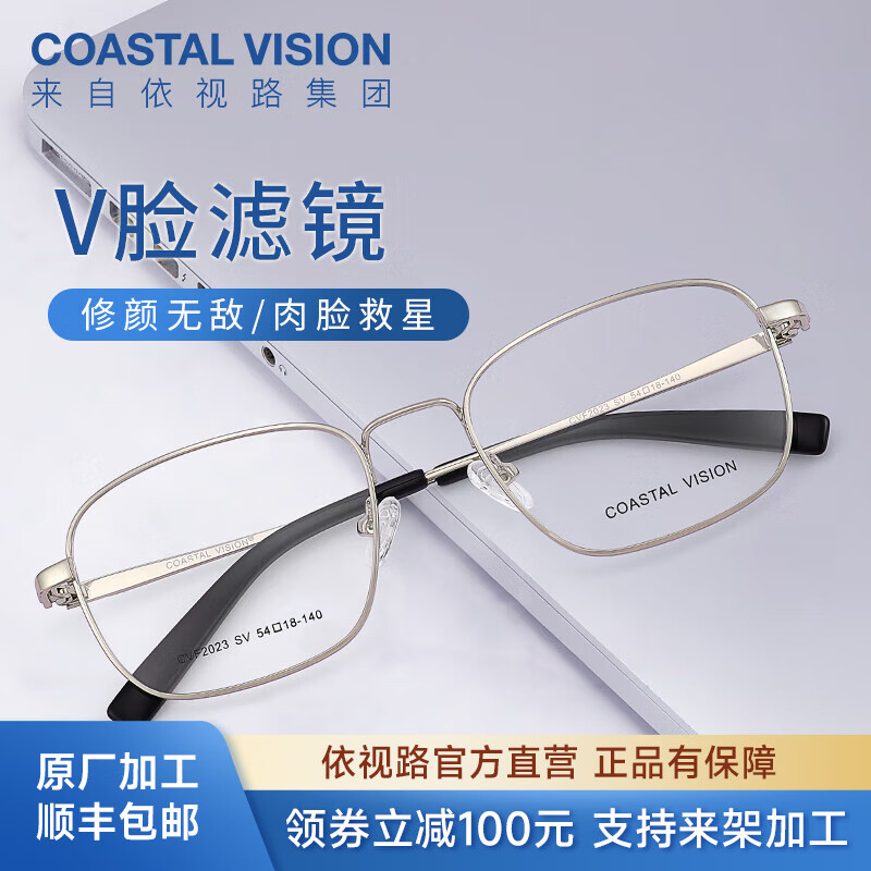 旗舰店依视路爱赞全晰非球面超薄镜片数码智能防蓝光高清光学可配度数近视眼镜 金属-全框-2023SV-银色 钻晶膜致1.60现片