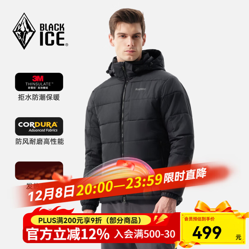 旗舰店黑冰25秋冬新款男款3M新雪丽棉防风防水透湿耐磨保暖活帽棉服F8005MJ 黑色 S