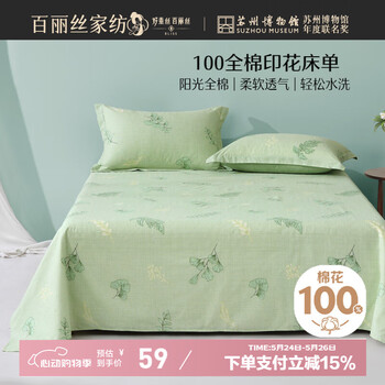 自营百丽丝水星家纺出品100%纯棉床单单件宿舍单人床单全棉被单床罩床上用品