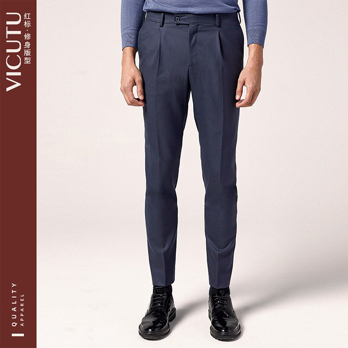 威可多【羊毛+氨纶】男士秋季西裤雾霾蓝裤子商务休闲西装长裤