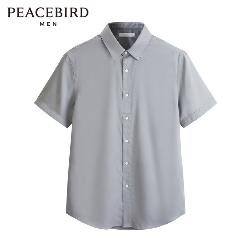 【清仓】太平鸟男装 夏季韩版商务休闲灰色短袖衬衫