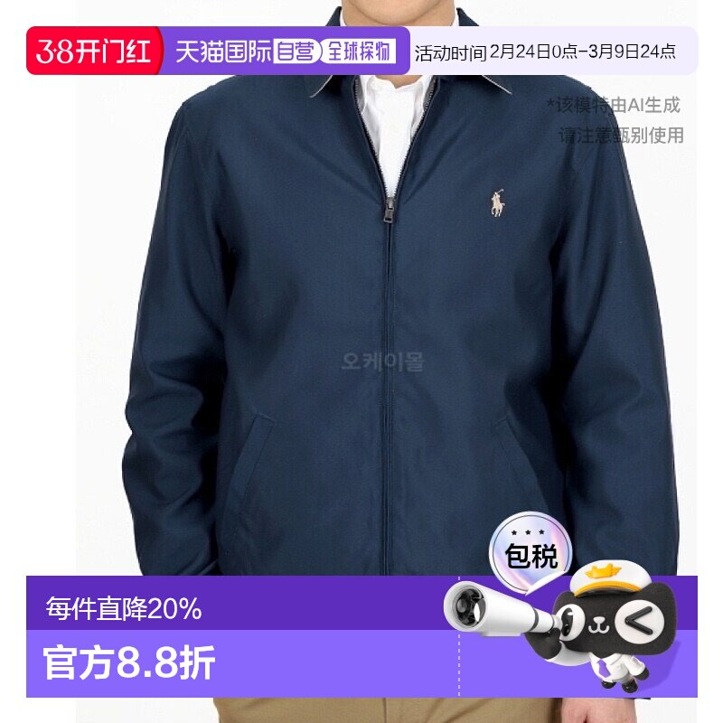 韩国直邮Polo Ralphlauren夹克男女同款海军蓝色拉链外翻领短款