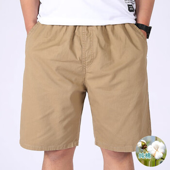 旗舰店尺度保罗纯棉短裤男中老年夏季薄款纯色休闲工装短裤五分裤大码男裤 AC1688卡其色 2XL【130-150斤】