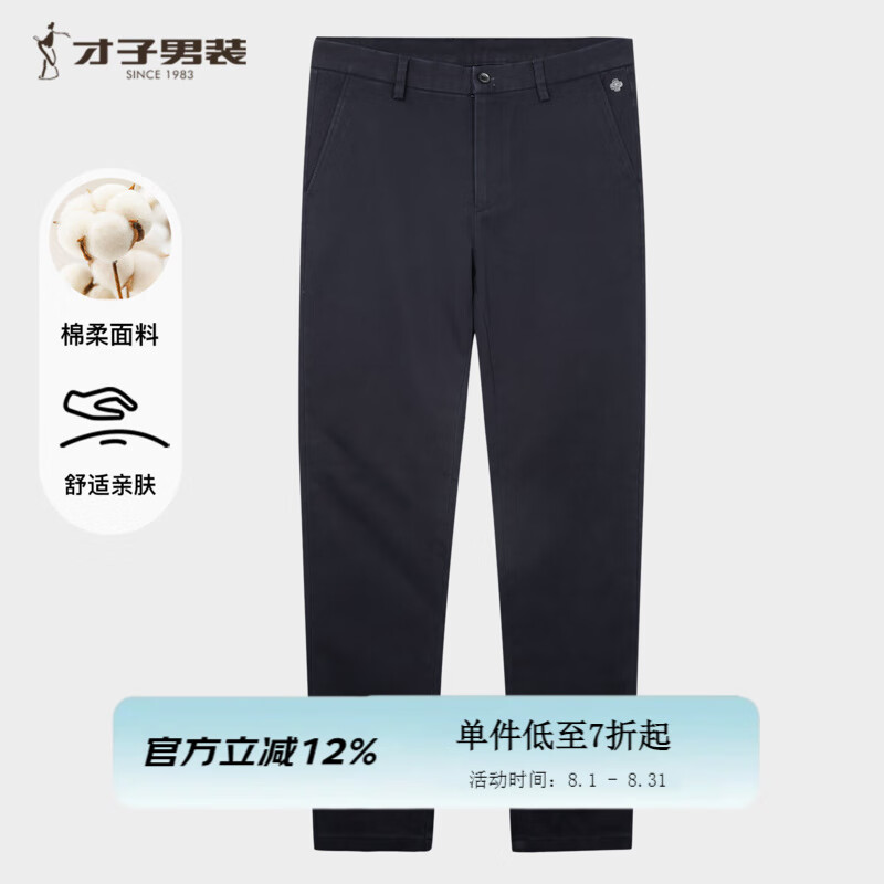 旗舰店才子(TRIES)男士商务休闲裤2025年春秋款舒适垂顺绵柔简约纯色基础款直筒裤 深蓝色 33 84cm