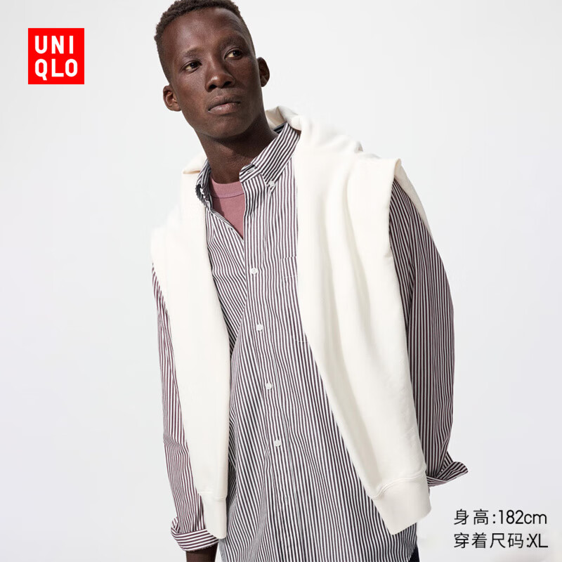 优衣库男装女装优质长绒棉条纹衬衫长袖衬衣480647 19 酒红色 3XL