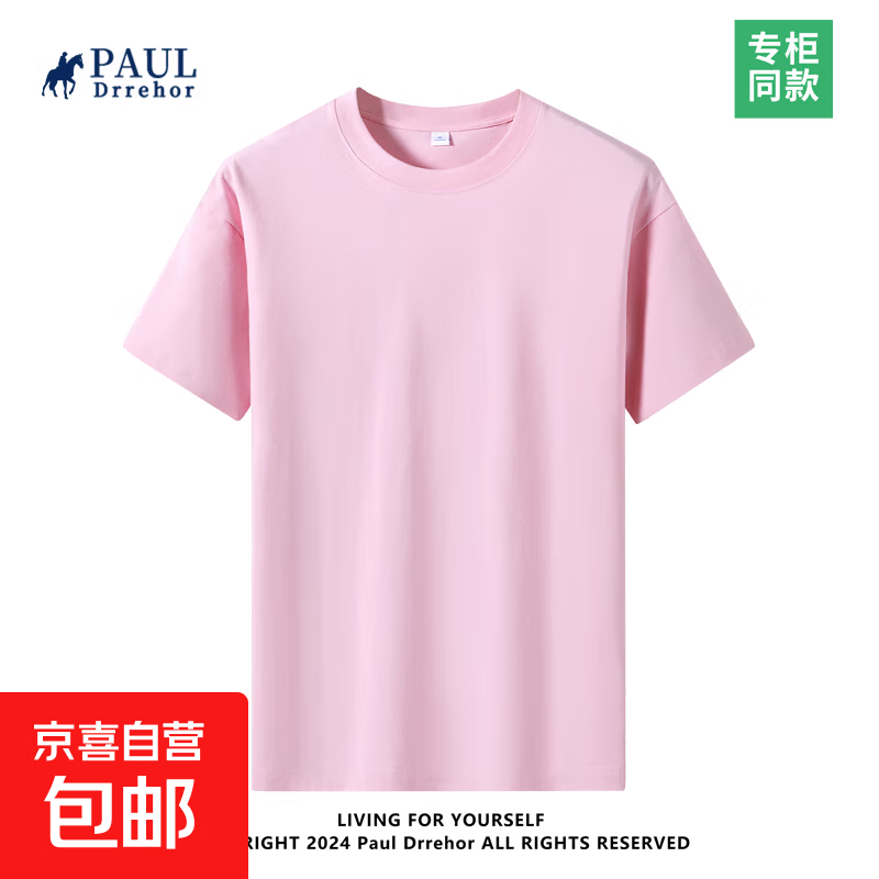 自营240重磅纯棉短袖t恤男高档纯色印花休闲基础款内搭半袖打底衫 粉色 4XL 185-200斤