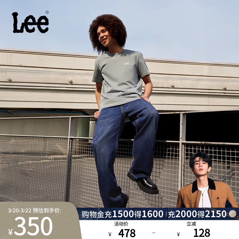 旗舰店Lee【张凌赫代言】宽松直筒深蓝色经典五袋款男阔腿牛仔裤休闲潮 深蓝色 28
