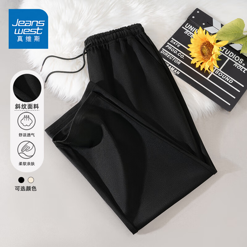 百亿补贴真维斯(Jeanswest)裤子男2026春秋季新款重磅黑色潮流宽松直筒休闲裤男士运动长裤子 黑色 纯色 M