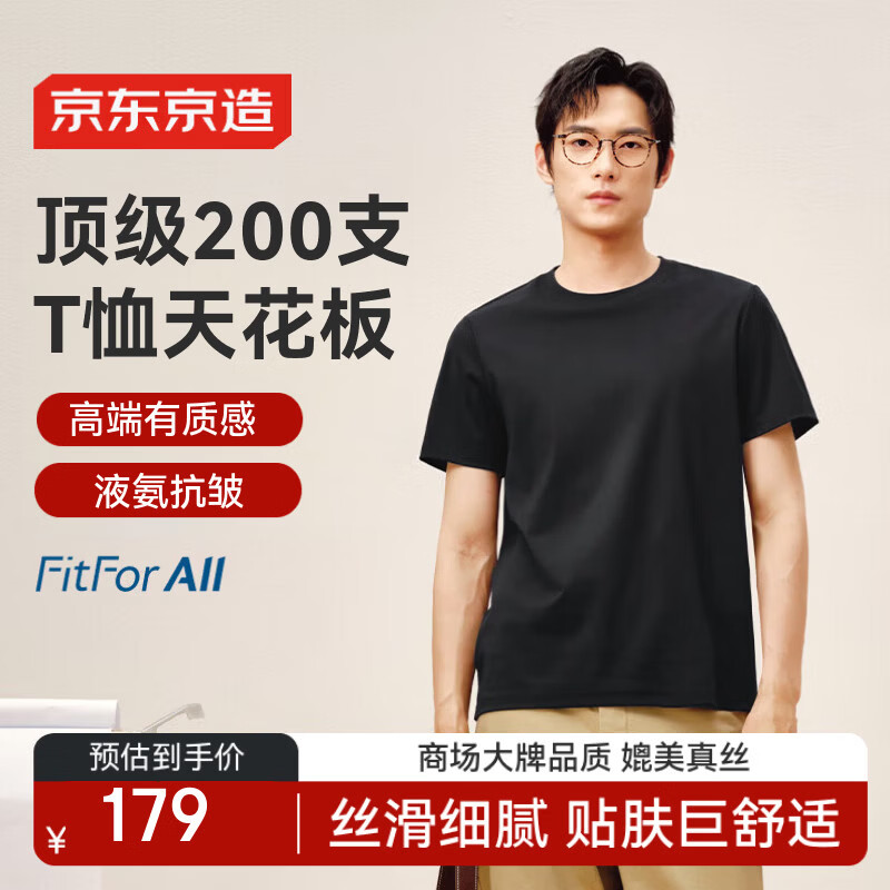 自营京东京造【顶奢200支】男士t恤短袖26春季新款高端t恤男装衣服黑色2XL