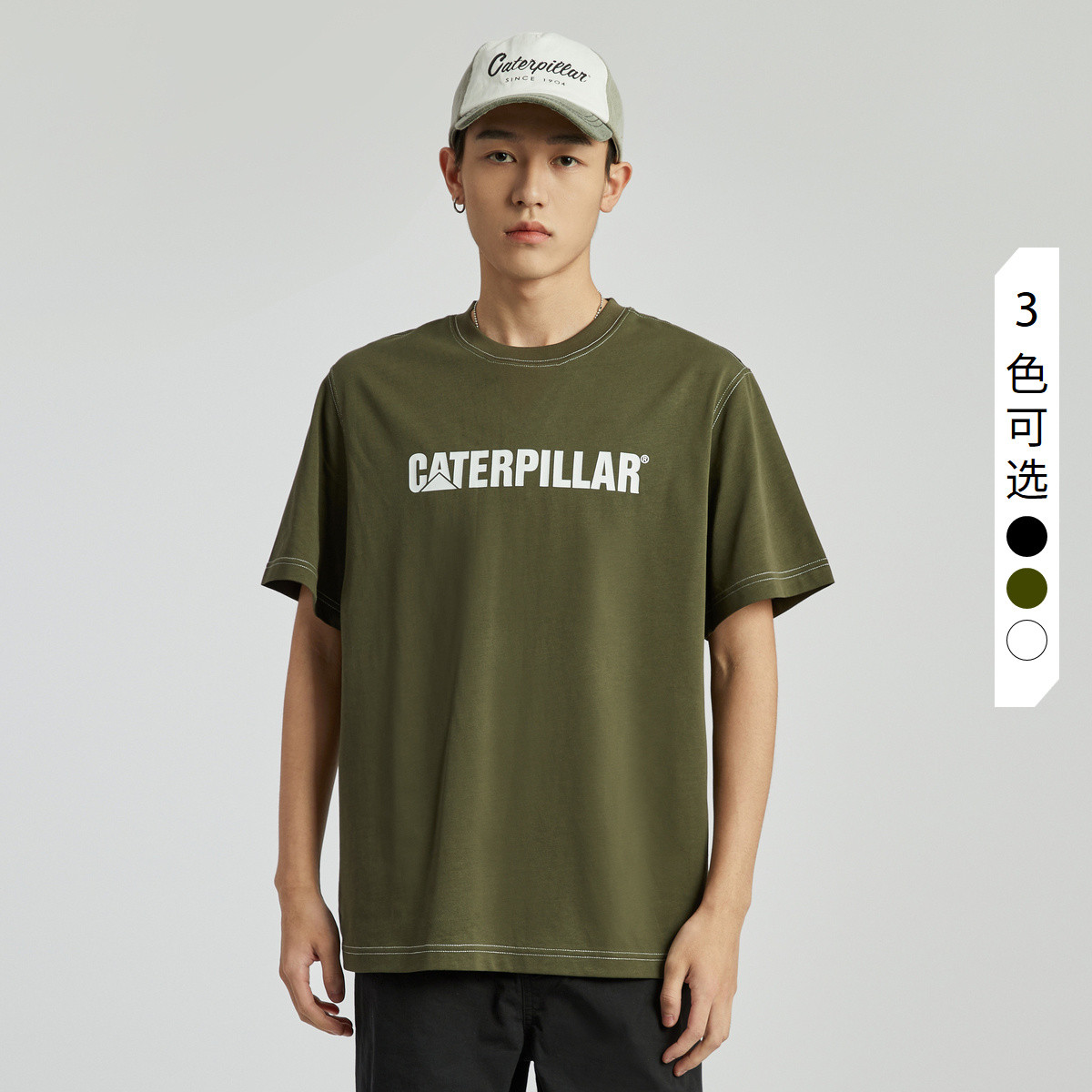 卡特春夏24款男士撞色设计logo印花短袖T恤