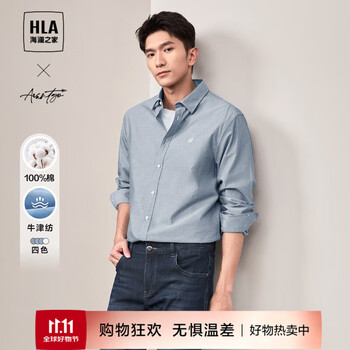 旗舰店海澜之家(HLA)长袖衬衫男24新款牛津纺翻领纯棉衬衣男春秋 蓝灰22 170/88A(S) 推荐63-68kg