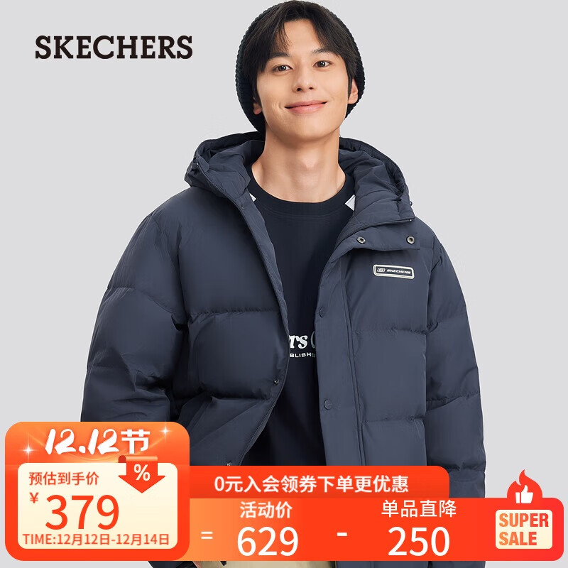 自营斯凯奇(Skechers)羽绒服冬季连帽保暖百搭外套休闲短款大衣男女同款L324U154