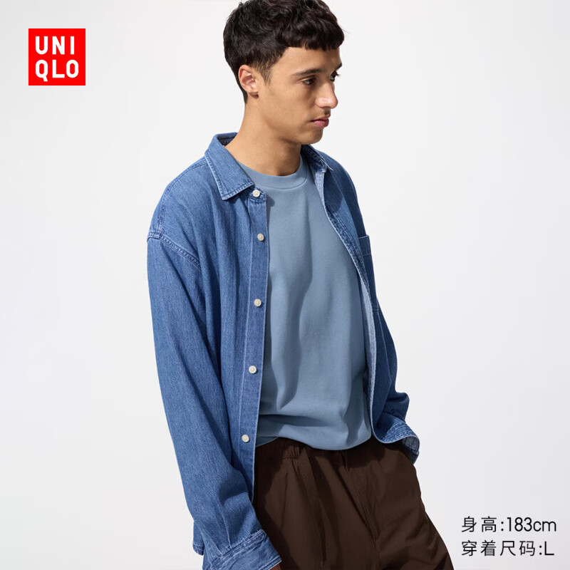 优衣库男装女装柔软圆领T恤/休闲长袖上衣479783 63 天蓝色 XL