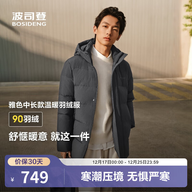 自营波司登25年冬季羽绒服90绒男士修身中长款加厚脱卸帽保暖百搭送礼外套