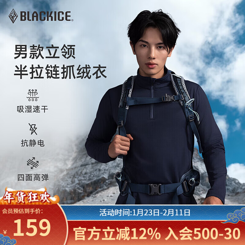 旗舰店黑冰(BLACKICE)25新款秋冬男抗静电吸湿速干立领半拉链抓绒保暖衣 F1107MJ 藏蓝 XL