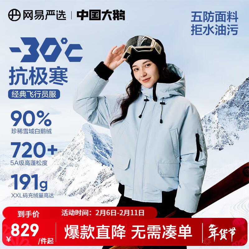 旗舰店网易严选中国大鹅x燕云联名款地表强温90白鹅绒短款派克羽绒服-30℃抗寒 B款24秋冬-以太蓝 90白鹅绒 L