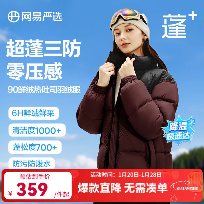 旗舰店网易严选【断码清仓】热吐司pro三防超蓬零压加厚90白鸭绒鲜绒面包 麒麟褐-立领拼色 2XL