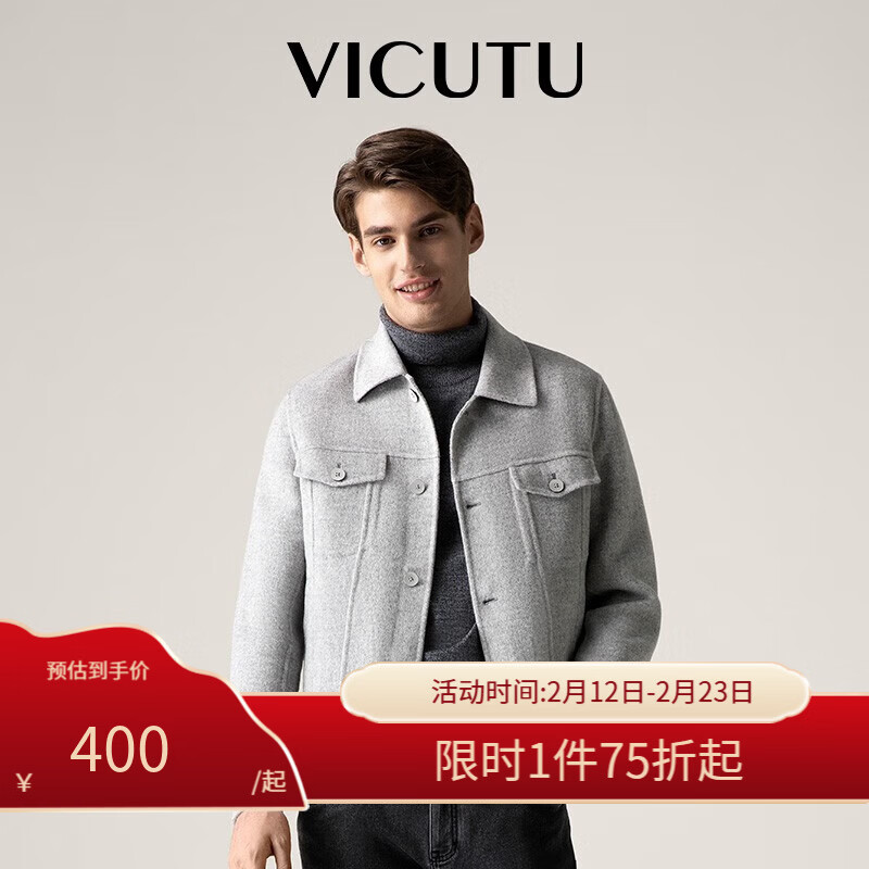 旗舰店威可多(VICUTU)男士大衣双面呢子短款商务百搭秋冬季外套 灰色 L