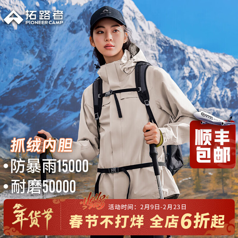旗舰店拓路者朱雀冲锋衣三合一抓绒内胆防水防风外套女户外保暖冬季登山服硬壳 米杏色-抓绒内胆 2XL