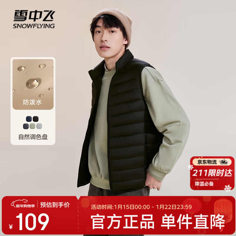 自营雪中飞秋冬新款男式轻薄羽绒服马甲基础男士短款羽绒秋马甲