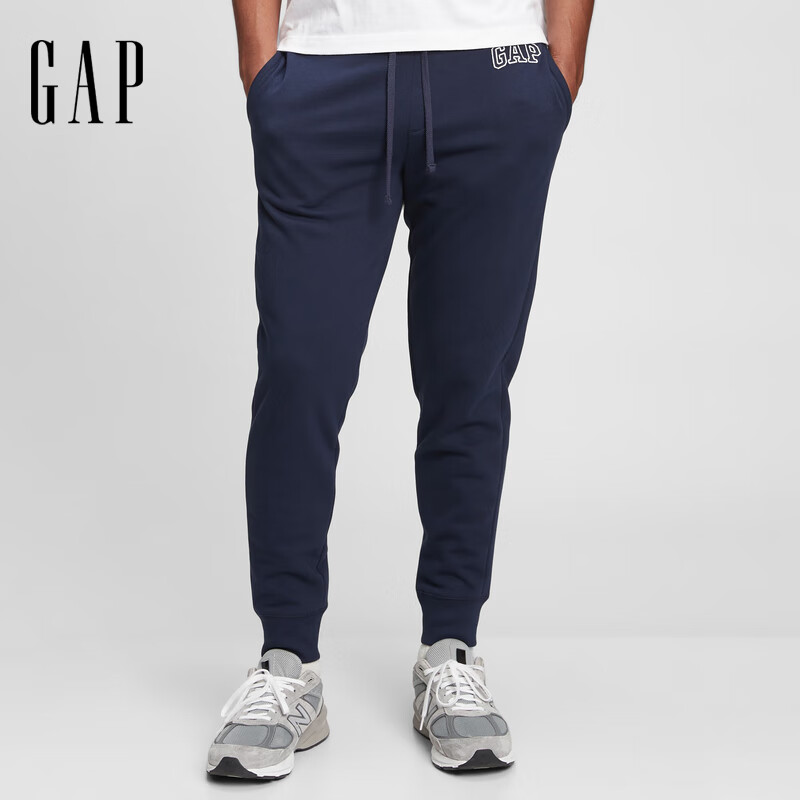 旗舰店Gap男装2025秋季新款抓绒松紧腰针织束脚裤运动裤休闲长裤500382 海军蓝 M 美码 L亚洲码180/100A