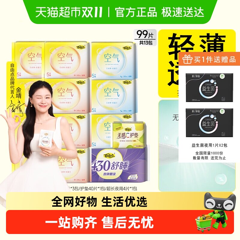 【优于新国标】自由点卫生巾空气13包99片日夜用组合装姨妈巾轻薄