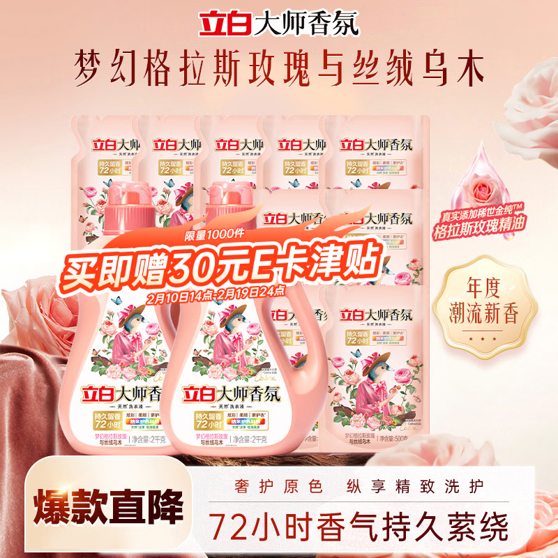 自营立白 大师香氛洗衣液 丝绒乌木玫瑰17斤整箱装 持久留香 摩登潮流香