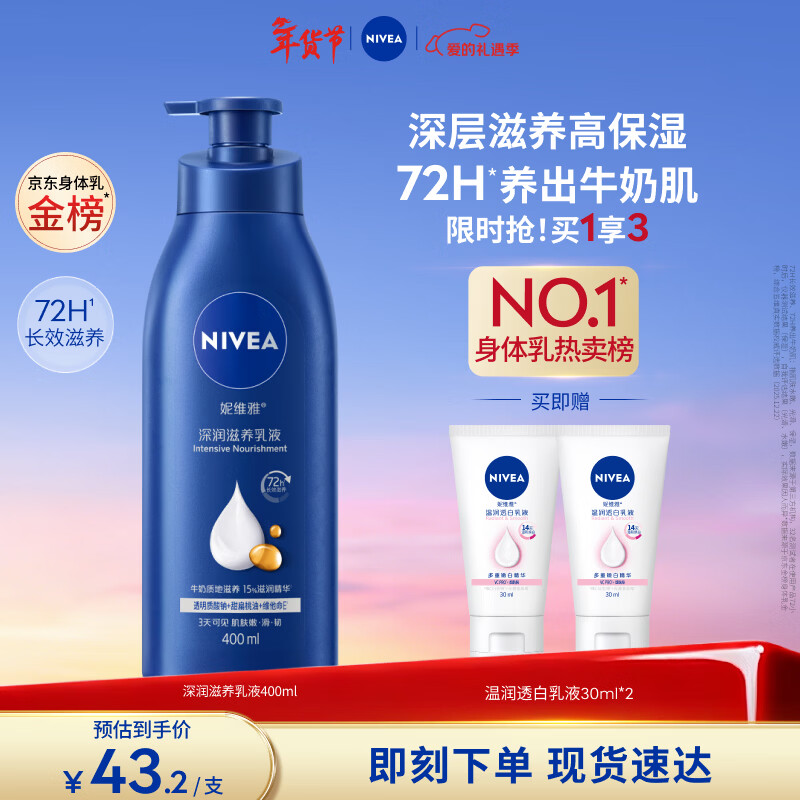 自营妮维雅(NIVEA)孙颖莎同款保湿防干燥身体乳女士深润滋养乳液400ml情人节礼物女