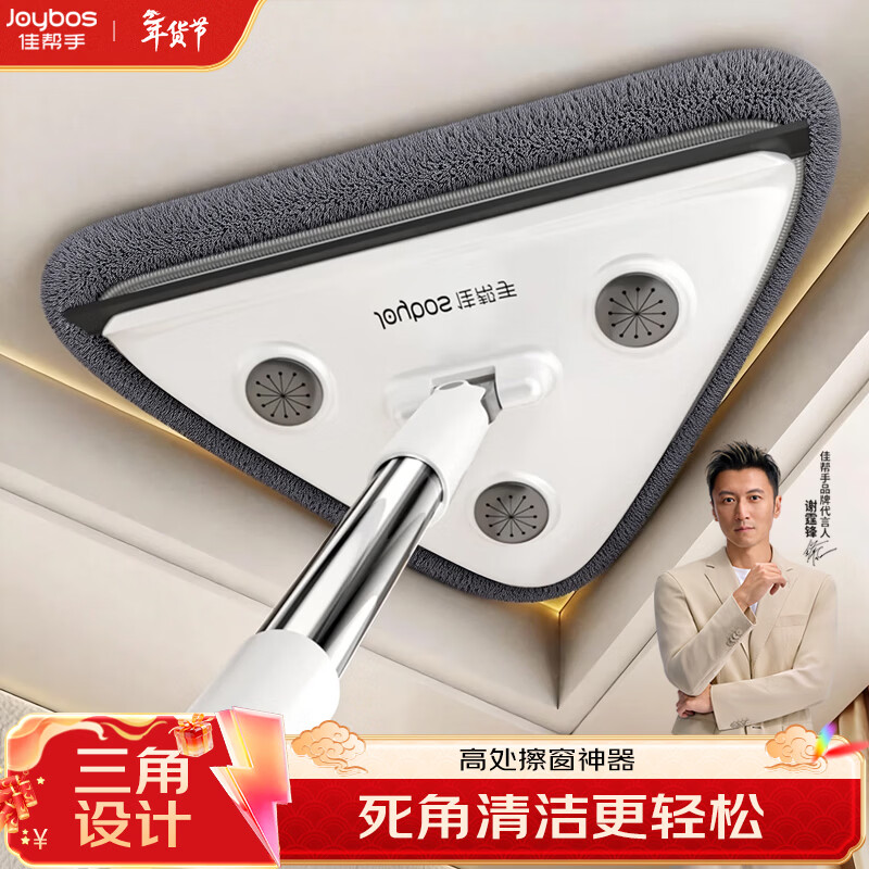 自营佳帮手三角玻璃擦2025款家用天花板擦柜子墙壁墙面清洁神器一拖净*4块布