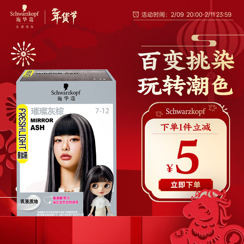 自营施华蔻(Schwarzkopf)斐丝丽染发霜7-12璀璨灰棕迷你口袋染50ml流行彩染更安心