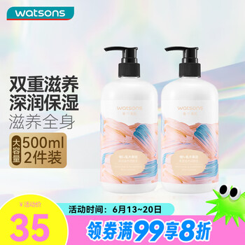 旗舰店屈臣氏(Watsons)柔滑润肤露补水滋润身体乳男女 500ml 2瓶 新款维E