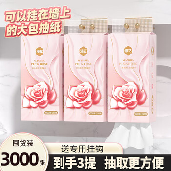 旗舰店漫花挂式抽纸大包纸巾家庭实惠装卫生间厕所挂壁式家用卫生纸悬挂厕纸 4层 1000张*3提 【赠挂钩】